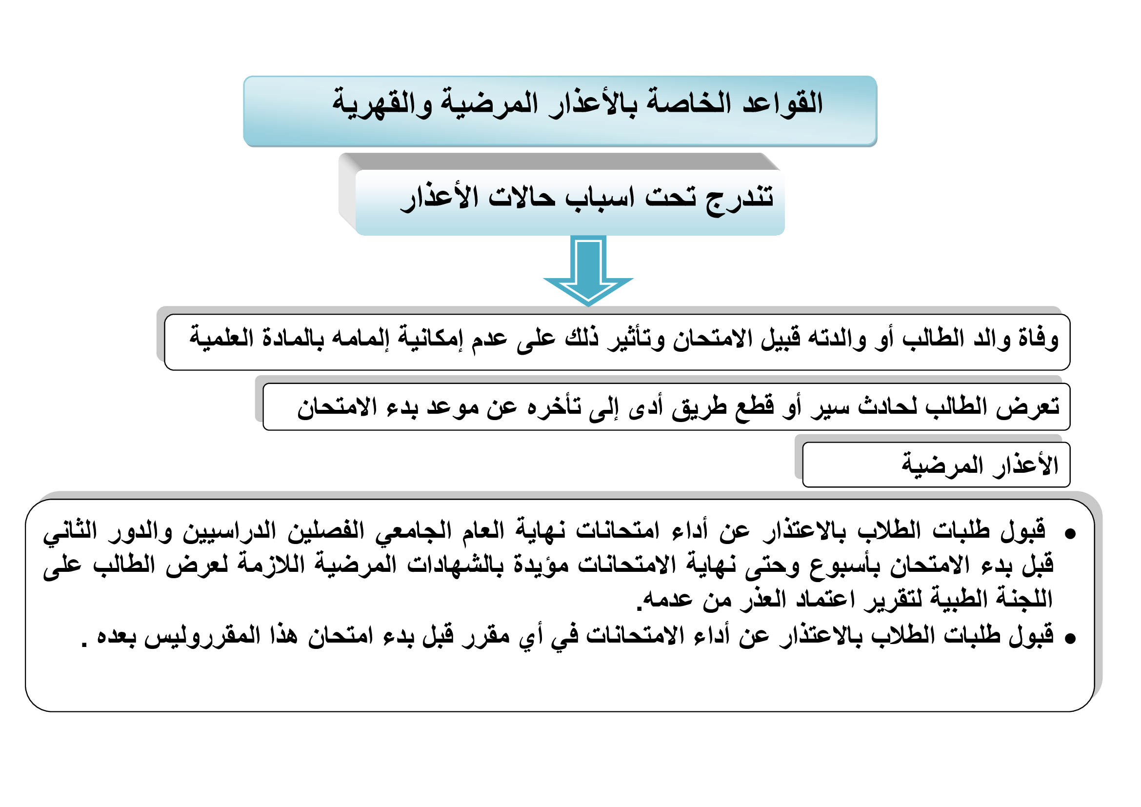 ▫️ القواعد المنظمة للأعذار المرضية والقهرية: