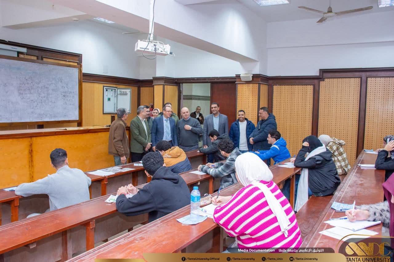 وخلال جولته، تفقد الدكتور السيد العجوز لجان الامتحانات بمختلف القاعات والمدرجات، واطمأن على توافر البيئة المناسبة للطلاب لأداء امتحاناتهم، حيث تم التأكد من كفاءة منظومة الإضاءة والتهوية داخل اللجان، وتوفير الهدوء التام والمناخ النفسي الملائم للطلاب، إلى جانب انتظام تواجد المراقبين والأطقم الطبية للتعامل مع أي طوارئ، ومطابقة أوراق الامتحانات لمعايير الجودة والقياس.
