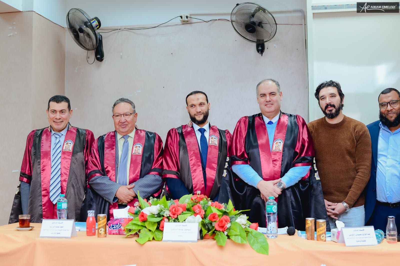 وتتكون لجنة الحكم والمناقشة برئاسة الأستاذ الدكتور اسماعيل يوسف إسماعيل، أستاذ جغرافية العمران ونظم المعلومات بكلية الآداب جامعة المنوفية "رئيساً"، والأستاذ الدكتور أحمد محمد أبو ريه، أستاذ الجغرافيا الطبيعية وعميد كلية الآداب جامعة الفيوم "عضواً خارجياً"، والأستاذ الدكتور عبدالرازق بسيوني الكومي، أستاذ الجغرافيا الطبيعية بقسم الجغرافيا ووكيل الكلية للدراسات العليا والبحوث "مشرفاً وعضواً"، وذلك بقاعة المناقشات الصغرى بالكلية.