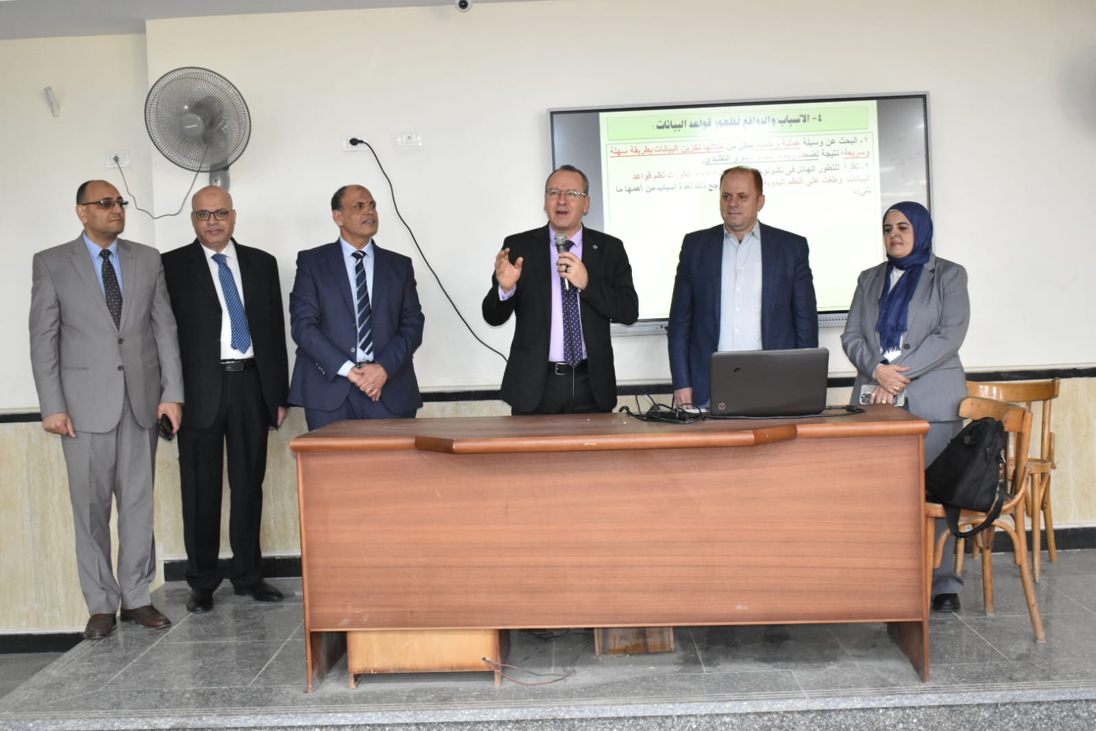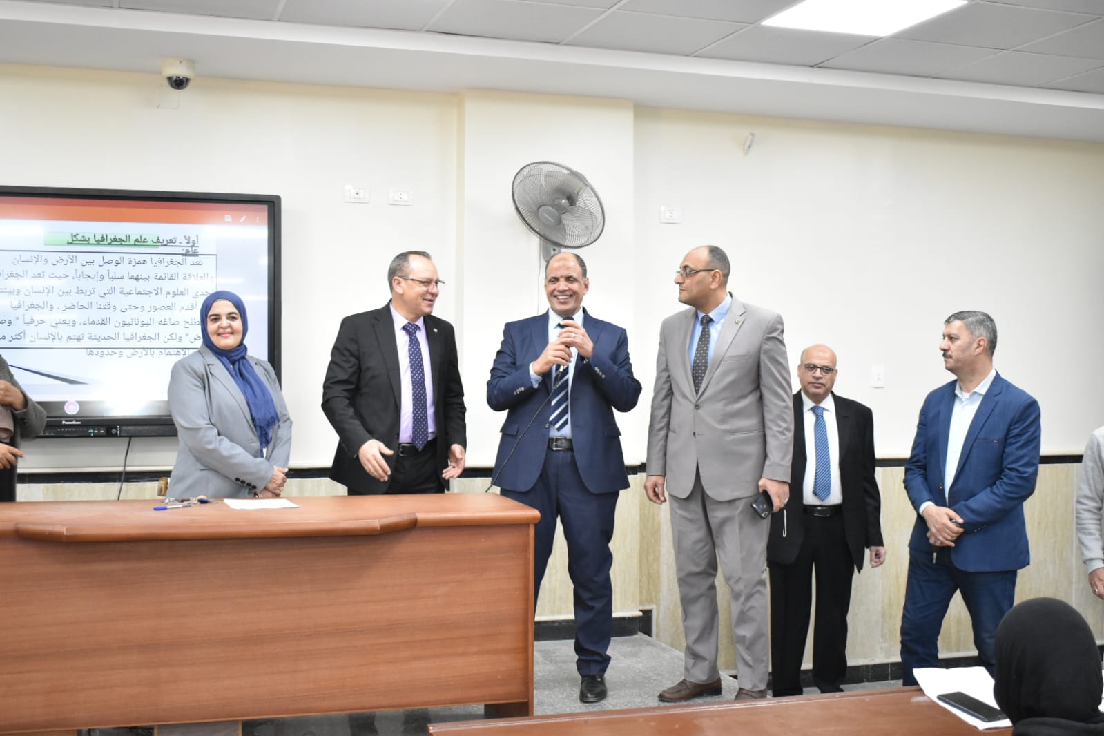 من جانبه، أبدى الأستاذ الدكتور أحمد عبادة العربي سعادته بالحضور الطلابي المتميز والالتزام الواضح بالمحاضرات، مؤكدًا أن العملية التعليمية تسير بصورة منتظمة ووفق الجداول الزمنية المقررة دون أي معوقات. كما استثمر اللقاء في حث الطلاب على ضرورة المشاركة الفعالة في الأنشطة الطلابية، لما لها من دور في بناء شخصيتهم وتنمية مهاراتهم إلى جانب التحصيل الدراسي.