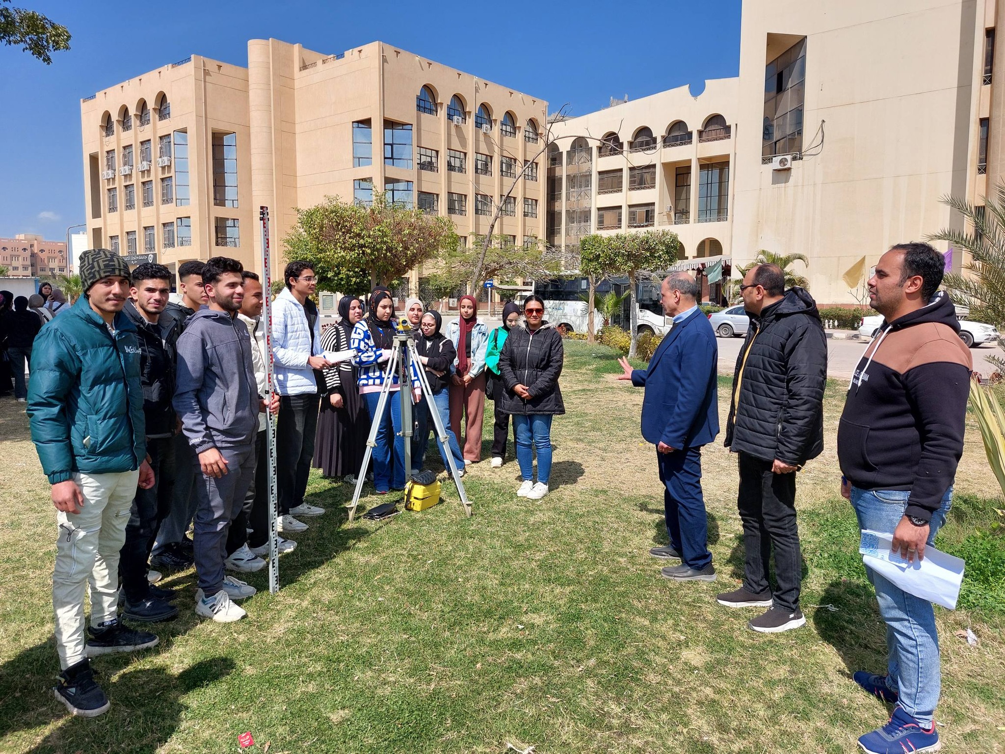 وشهدت الفعاليات جولة تفقدية للأستاذ الدكتور أحمد عبادة العربي، الذي تابع عن كثب سير العمل الميداني ومستوى التفاعل التدريبي، حيث أعرب سيادته عن فخره بالمجهود المتميز الذي يبذله أعضاء هيئة التدريس لضمان جودة المخرجات التعليمية، وحثّ الطلاب على استثمار هذه الفرصة الذهبية للتعامل المباشر مع أحدث الأجهزة التقنية والمساحية التي توفرها الكلية، والتي تماثل التكنولوجيا المستخدمة في كبرى المشروعات القومية.