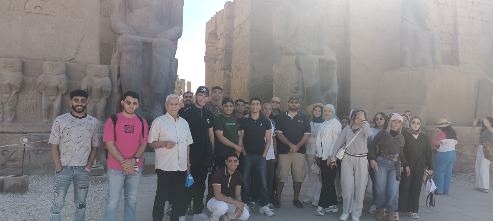 ثم توجّه الطلاب بعد ذلك إلى معبد الأقصر، حيث استمعوا إلى شرح مفصل حول المعالم الأثرية الفرعونية داخل المعبد، مع التوقف لشرح تاريخ مسجد أبو الحجاج الأقصري، الذي يتوسط المعبد ويُعد من أبرز الشواهد على تداخل الحضارات.