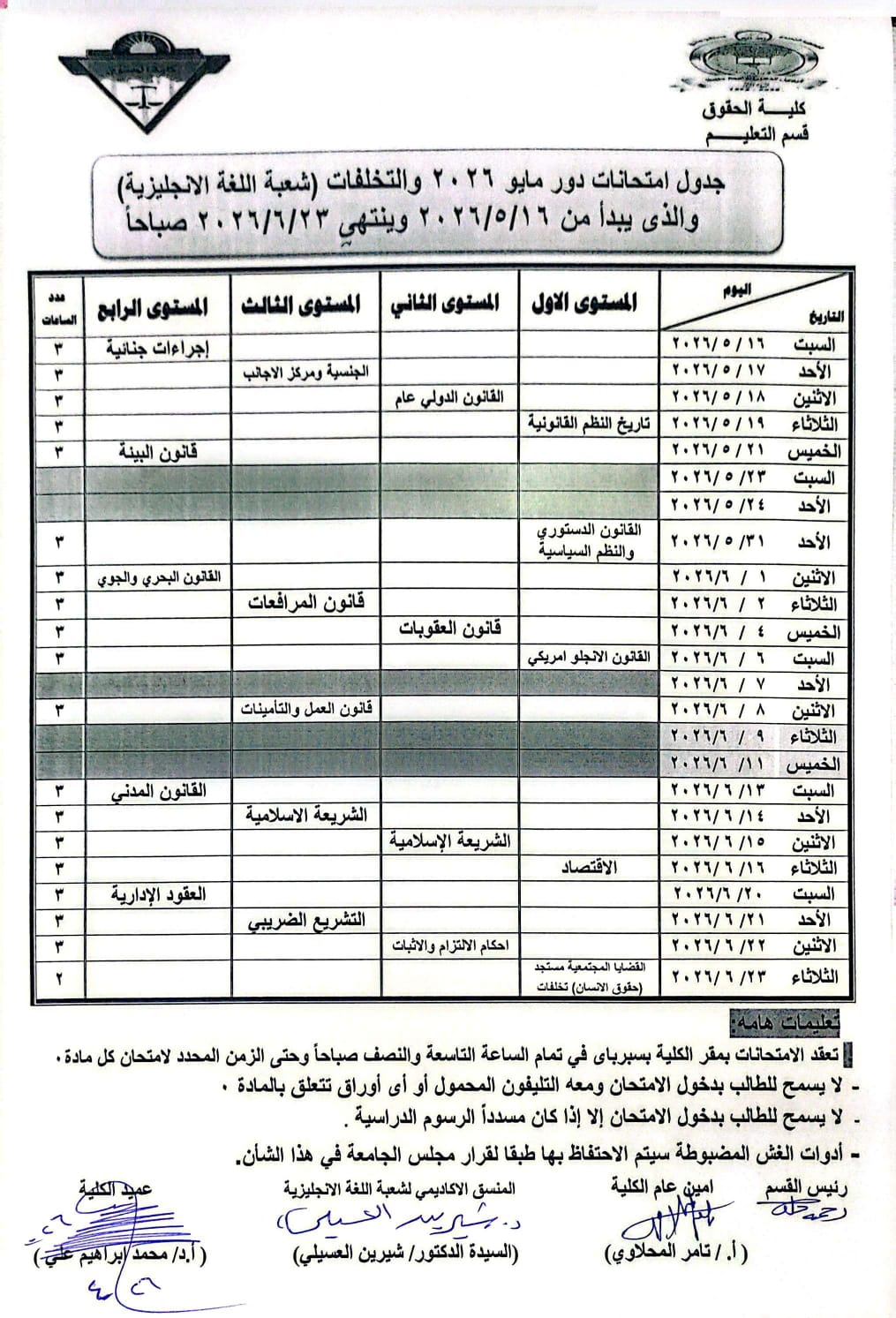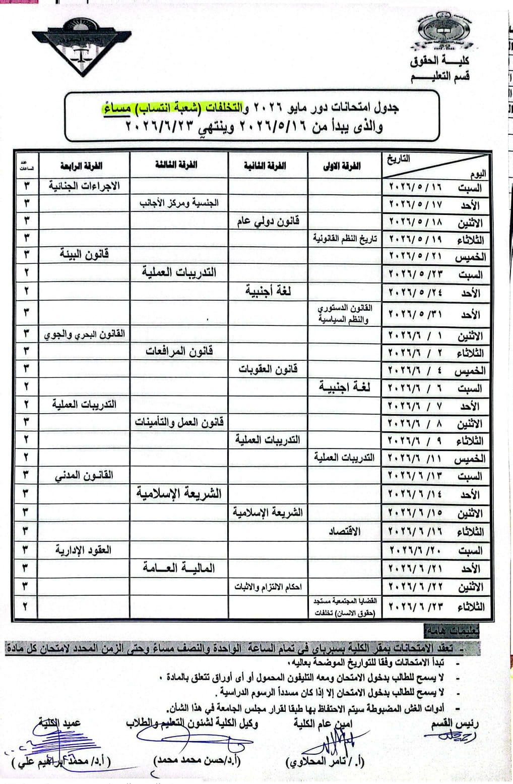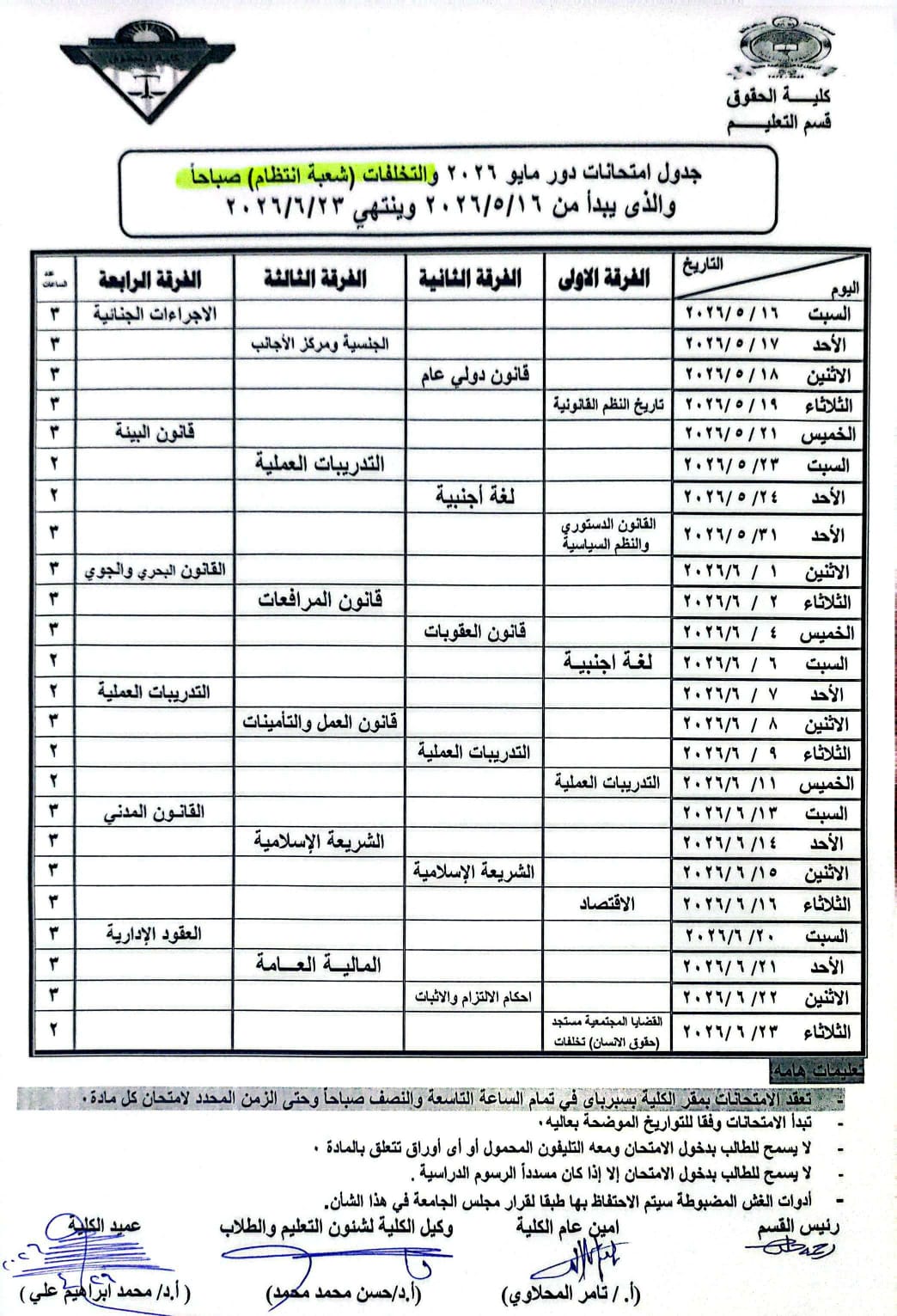 أعلنت كلية الحقوق جامعة طنطا جداول امتحانات الفصل الدراسي الثاني للعام الجامعي 2025/2026